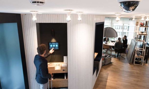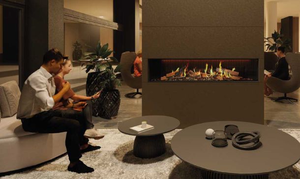 Mit einem elektrischen Kamin wird die Lobby zum Hotspot