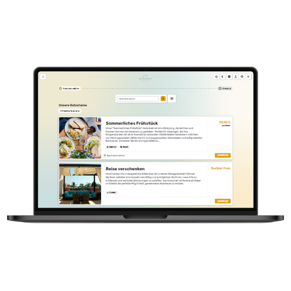 Persönlich statt gewöhnlich: In DIRS21 One können Sie ganz individuelle Wert- oder Sachgutscheine für Übernachtungen, Candle-Light-Dinner oder einen Tag im Spa gestalten. Schaffen Sie einzigartige Erlebnisse mit Gutscheinen, die genau auf Ihr Angebot und die Wünsche Ihrer Gäste zugeschnitten sind. Mit dem Gutscheinshop bringen Sie Ihre Kundenbindung auf ein ganz neues Level.