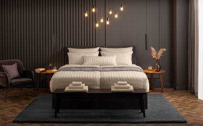 Die neue Damast-Bettwäsche „Mini-Raute“ vereint Eleganz mit hoher Wirtschaftlichkeit und schafft eine luxuriöse Atmosphäre im Hotelzimmer.