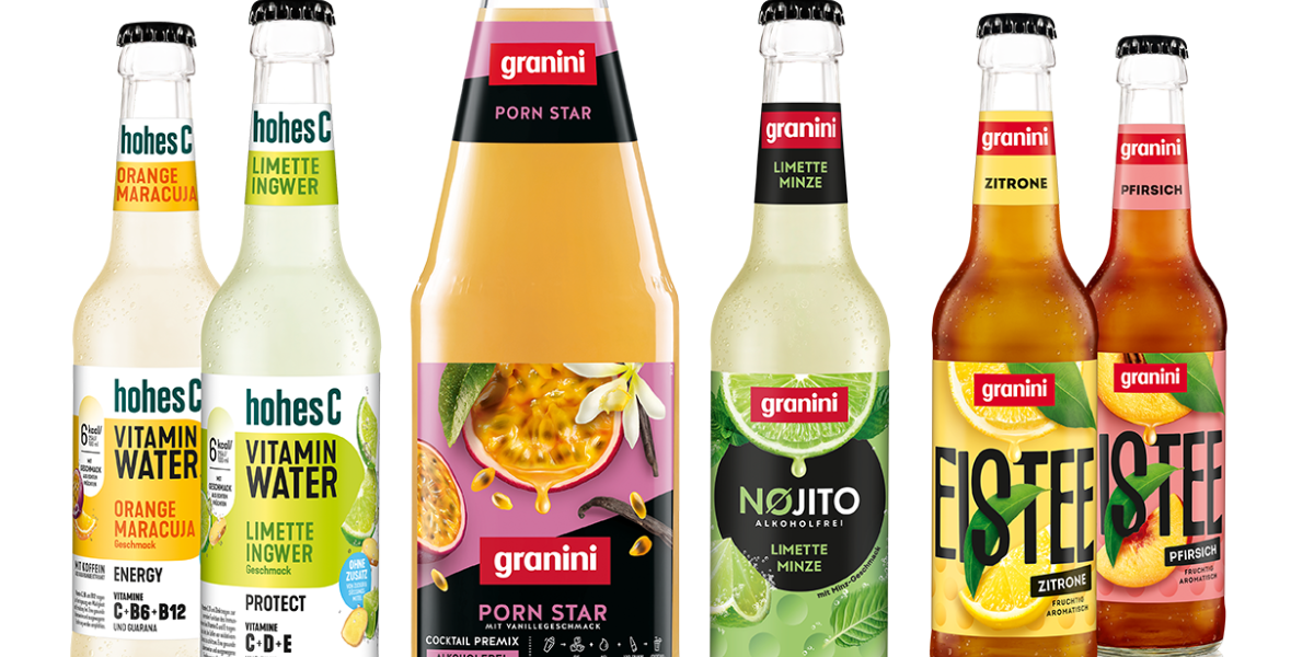 Mit vier neuen Produkten setzen granini und hohes C in diesem Frühjahr starke Impulse in der Gastronomie und Hotellerie. Ob fruchtig-aromatischer Eistee, angesagte Mocktails oder funktionale Vitamingetränke – die neuen Konzepte greifen aktuelle Trends auf und bieten Gastronomen attraktive Möglichkeiten, ihr Angebot zu erweitern. Während hohes C VITAMIN WATER, granini EISTEE und granini NØJITO in der praktischen 0,33 Liter Longneck Glas-Mehrwegflasche erhältlich sind, kommt der granini PORN STAR in einer 1 Liter VDF-Mehrwegflasche speziell für den professionellen Einsatz an der Bar.