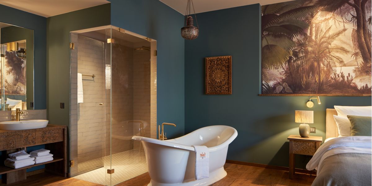 Die kuratierte Farbpalette der GROHE Colors Kollektion ermöglicht es Hoteliers und Planer:innen, individuelle Badkonzepte ohne Kompromisse zu realisieren. Im Vabali Spa & Hotel Hamburg etwa fügen sich GROHE Essence Armaturen im goldenen Cool Sunrise mit gebürstetem Finish perfekt in das balinesische Designkonzept der großzügigen Zimmer und Suiten ein. Die stilvoll-luxuriösen Waschtisch- und Wannenbatterien beeindrucken auf den ersten Blick – und das dank hochwertiger PVD-Beschichtung auch noch in vielen Jahren.